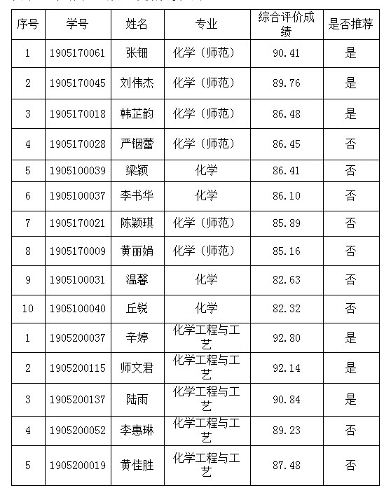 推免生推荐工作专家审核小组研究讨论决定,推荐名单如下: