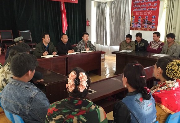 喀什地区“访惠聚”活动办公室来工作组调研指导工作。3月24日上午,地区“访惠聚”活动办公室指导组组长张永胜、副组长叶芳一行在县“访惠聚”活动领导小组办公室副主任丛林来的带领下,来我校住其木盖尔里克村(20)村工作组调研指导工作,就住村工作组生活和安全防范情况,围绕“三项重点工作”开展工作情况,精准扶贫工作开展情况,住村工作队学习、生活和工作中出现的问题和困难以及创新做法和成效进行详细调研。