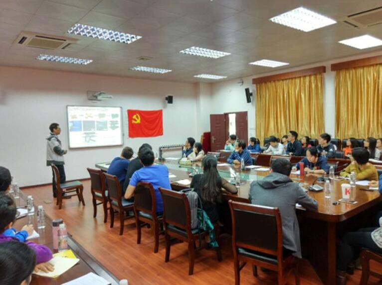 支部书记袁杨同志首先带领大家认真学习了习近平总书记参加全国人大广东代表团审议时的讲话精神。他在谈学习体会时讲到,总书记的讲话对人才、创新在国家发展中的作用定位非常精辟,高屋建瓴。高校老师处在科学研究的第一线,应当在日常科研活动和教学活动中培育和践行创新精神,为我国的科技和经济发展,以及未来人才的培养贡献更大的力量。