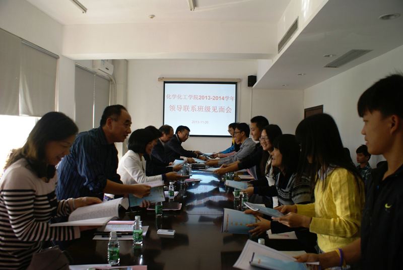 2013年度领导干部联系班级见面会。联系班级学校领导、副校长于欣伟教授及相关领导、辅导员、班主任和2012级、2013级学生代表参加了本次会议。