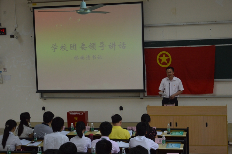 大会在雄壮的国歌声中拉开帷幕,林焕清副书记为会议致辞。会上李燕兴同志作第三届团委工作报告和团费收支情况报告,杨慧仪同志作第三届学生会工作报告和学生会会费收支情况报告。大会表决通过了两项报告。随后第四届团委和学生会候选人上台作自我介绍,通过大会代表团投票,计票人计票和严格的监票过程,选举出第四届团委9位委员,学生会13位委员。由总监票人宋著立同志宣读第四届团委学生会委员名单。大会在激昂的代团歌中落下帷幕。