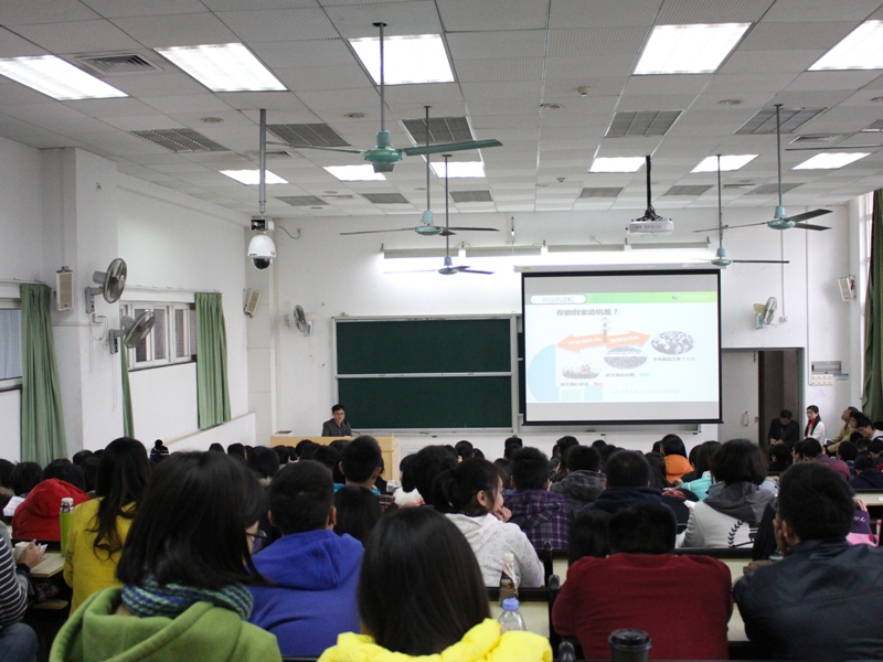 2016届毕业生创业就业经验交流会在理科教学楼南楼举行,优秀毕业生李茂锐应邀回校介绍就业经验。交流会由院团委书记李燕兴主持,院党委副书记谭启亮、学工办主任宋著立以及2016届全体毕业生一共180多人参加了交流会。