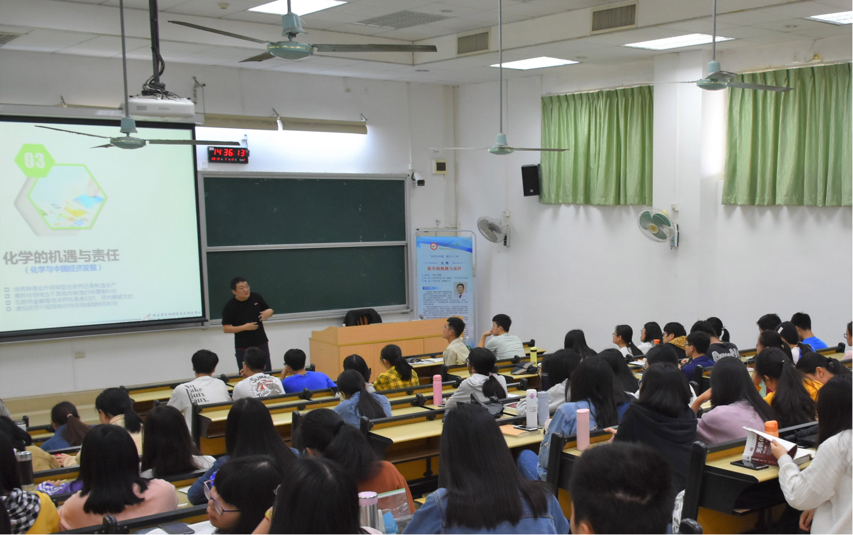 本次讲座以丰富而新颖的内容、严谨而风趣的语言为两大亮点,为一场生动的专业教育、人生教育。牛利教授从化学的重要性谈起,结合自身带领团队开展科学研究、参与实际项目的经历,逐步深入到化学的学科领域,让同学们领略到化学、分析化学在国家发展中发挥的重要作用,更体会到它们在日常生活中无处不在的实用性,内容涵盖生产生活的众多领域,揭示化学产生作用的处处细节,由现象到本质,形式新颖,逐步凸显出化学发展的机遇与我们肩上的责任,让同学们深受鼓舞;作为化学领域专家,牛利教授以通俗而风趣的语言,将化学的学科介绍、知识应用等专业内容以大众化的方式呈现,让同学们“听得懂、听得乐”,对化学更多几分了解和热爱。在谈到分析化学的作用时,牛利教授笑称“分析化学是万金油”,巧妙点出分析化学的广泛应用,令人印象深刻。
