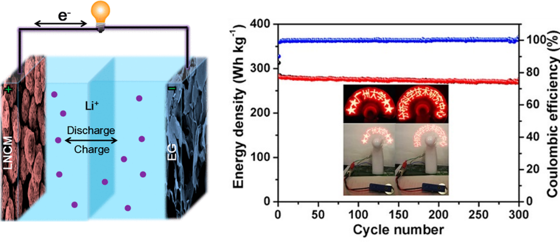 除在材料上获得的突破,牛利团队在电池组装上也取得了重要进展。该团队与中国检科院邹明强研究员和美国弗吉尼亚理工大学李征教授团队合作报道了利用电化学剥离的高质量石墨烯作为锂离子电池的负极与LiNi0.6Co0.2Mn0.2O2正极组装了全新的锂离子全电池。该全电池能量密度可达278 W h kg-1。除此之外,它也展现出了优异的倍率性能、突出的低温特性和稳定的循环特性(从室温到-30℃,电流密度为180 mA g-1时,容量保持率为100%),如此优异的性能主要得益于电化学剥离的石墨烯具有高的电子导电性和大比表面积。该研究成果最近发表在能源类国际期刊《ACS Applied Energy Materials》上,av电影
