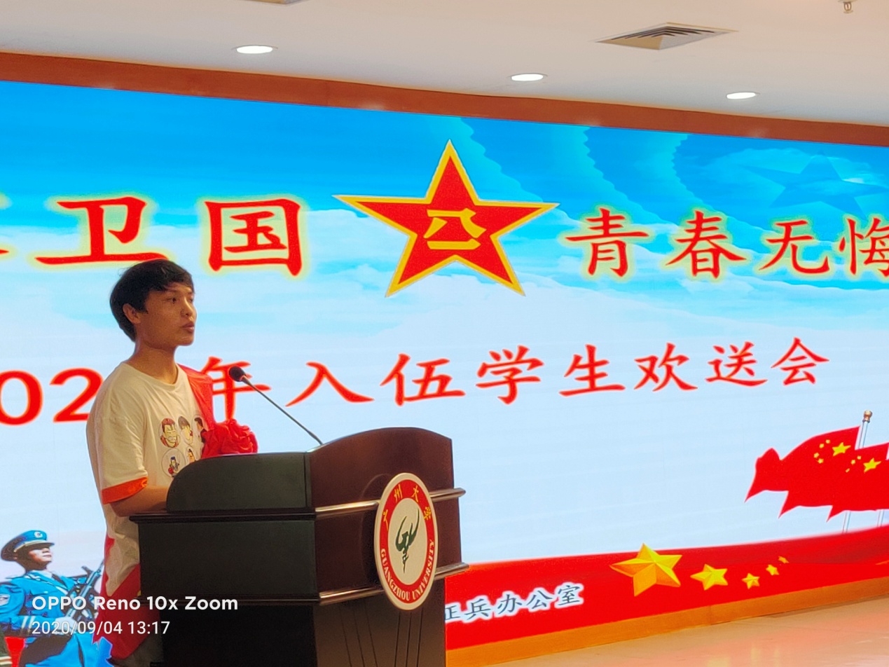 9月4日,学校举行2020年夏秋季入伍学生欢送会,来自全校16个学院和4个二级学院的70名同学,带着学校领导的殷殷嘱托,带着同学们的深深祝福,应征入伍,保家卫国。其中就有av电影