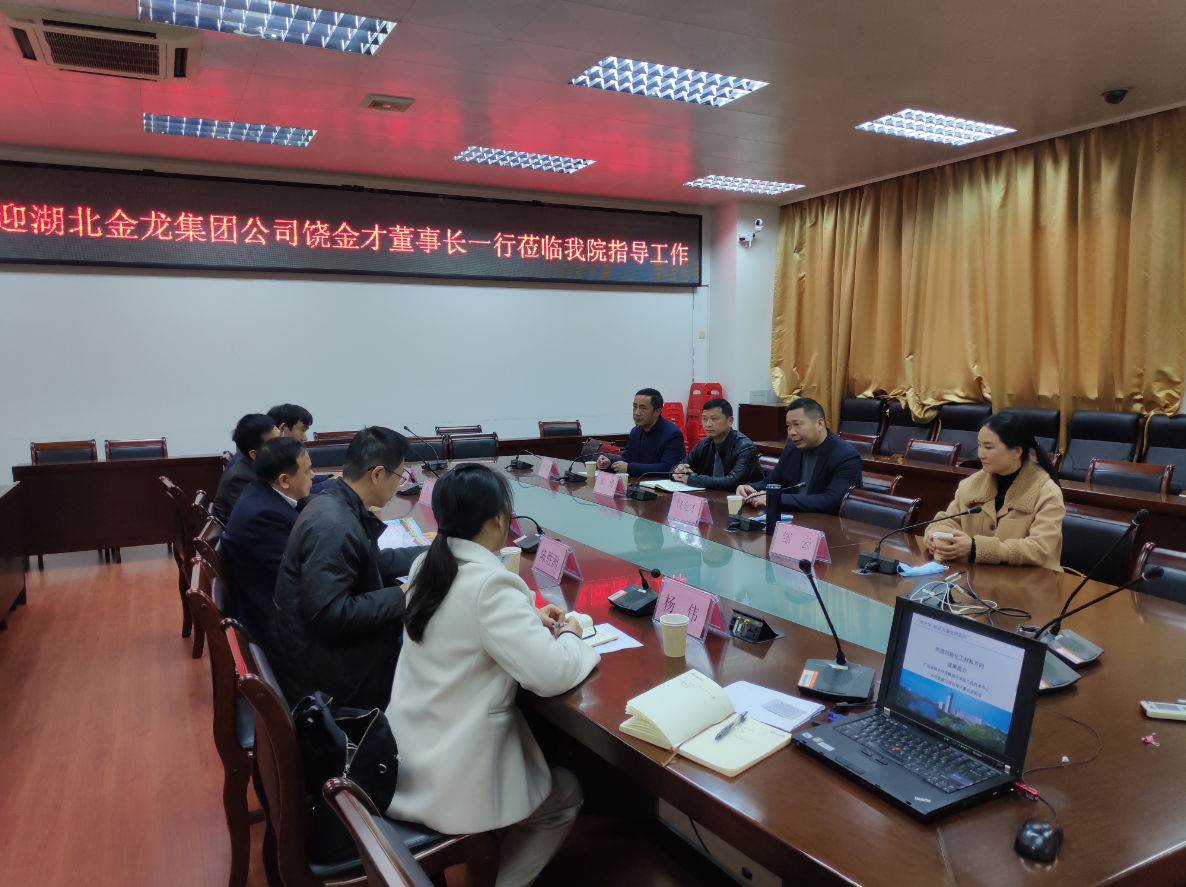 邹汉波副院长首先向湖北金龙集团的到访表示欢迎,并介绍了学校和学院在人才培养和学科建设方面的成绩。刘自力教授详细介绍了化工系和能源与催化研究所在新材料开发、产学研合作、成果转化等方面的工作,并对双方的进一步合作提供了思路。金龙集团饶金才董事长简要介绍集团在技术研发、度身设计、技术处理、产品加工以及售后服务方面的发展情况,详细阐述了企业在PVC生产、增塑剂、涤纶长丝以及新型化工助剂方面的研究计划,并对校企产学研、人才培养等方面深度合作进行了规划。金龙集团邹勇总经理主要针对企业实际需求、增塑剂的工艺和性能、相关助剂的合成等细节等进行了探讨。