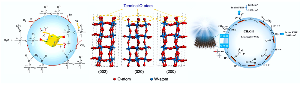 化石资源的逐渐枯竭以及温室气体(二氧化碳、甲烷)的排放对全球气候与人类的生存环境造成了严重的影响。温室气体的再生利用在解决环境和能源问题两方面都具有重要的理论价值和现实意义。目前在众多二氧化碳和甲烷转化技术中,光催化技术利用绿色光能提供能量完全符合可持续发展战略。但是受限于二氧化碳和甲烷转化过程中多种复杂中间体的存在,目标产物(甲醇或甲醛)的选择性难以提升。
