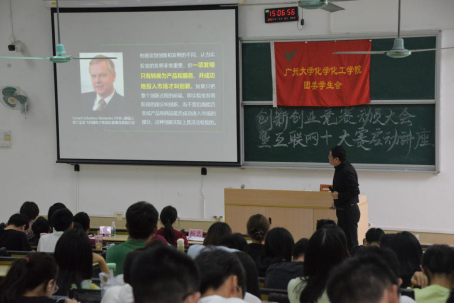 牛教授在授课中,围绕四个方面作阐释,一是“内涵”,创新是有别于常规思维并产生影响,给资源带来新价值的活动,是一个民族进步的灵魂,如今处于“大众创业、万众创新”的时代,参与是为了国家的进步;二是“创新”,创新源于创新思想,核心在于创造人才,要因时制宜,符合时代发展,具备科学精神和时效性,同时依赖于团队合作,是一个国家和民族发展的重大力量;三是“创业”,一项发明只有转化为产品与服务并成功投入市场才是创业,是一项高风险高回报的活动,成功的创业要有先进的技术优势,可控的生产成本,充足的资金支持,优秀的团队合作和积极的政策支持;四是“感言”,牛教授表示“创异谋思变,德贵自日新”,创业成功靠1%天赋和99%努力,我们要站在巨人的肩膀上,并做有情怀、有责任、有担当的新一代创业青年。