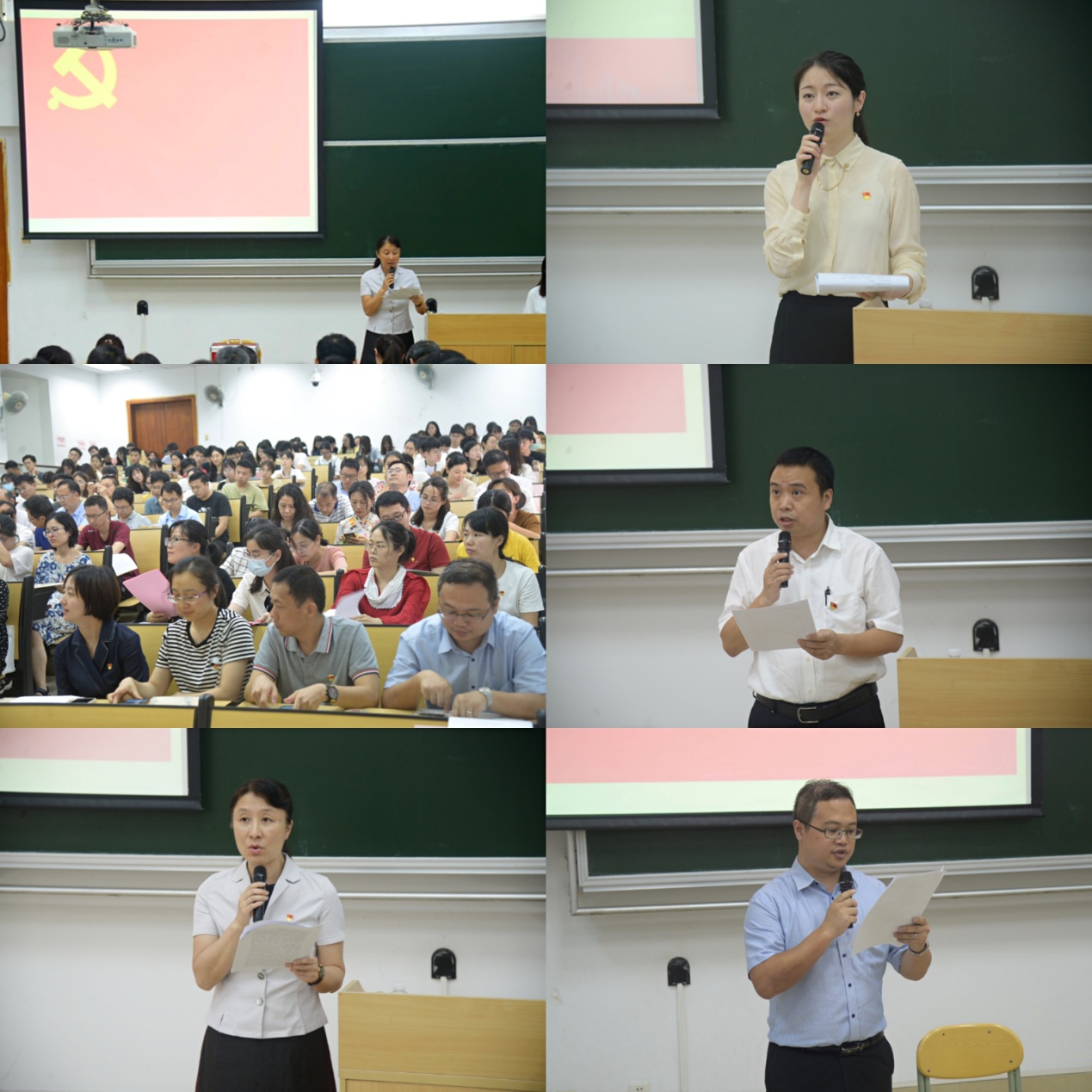 会议由学院党委副书记杨艺同志主持,学院党委书记周海兵同志作了题为《高举旗帜 固本强基 开拓进取 谱写新时代学院发展新篇章》的工作报告。报告深化党的全面领导、党的建设进入了新阶段,深入贯彻党的教育宗旨、立德树人业绩有了新高度,凝心聚力、开拓进取,学科专业建设取得了新突破;深入贯彻全国教育大会精神、人才队伍建设有了新格局,聚焦学校24字培养目标,人才培养质量有了新提升,围绕地方社会发展需求,科研和服务社会有了新发展等六个方面,回顾总结了过去四年学院党委的主要工作,突出展示了四年来学院党委带领全院党员干部和全体师生,求真务实,改革创新、奋勇拼搏,在教学、科研、学科建设、行政管理、学生思想教育与管理等方面所取得的长足进步。同时,报告也指出,学院的党建工作、教风学风建设、人才队伍建设、学科均衡发展等工作与高水平大学建设的指标还存在着一定的差距。为此,学院党委提出今后四年的主要工作任务是:进一步加强党的建设,坚持党的全面领导;坚持立德树人的教育宗旨,着力培养有广大底色、化院特色的高质量人才;创新举措,引育结合,努力打造高水平师资队伍;抓住粤港澳大湾区建设机遇,着力打造一流的学科平台;坚持创新引领,着力提升科研创新能力;充分挖掘发挥学科特长,着力提服务社会能力;积极推进学院内部管理改革,着力提高服务治理效能。最后,报告号召全体党员积极投身学院的各项事业,为学校高水平大学建设书写学院新的篇章。