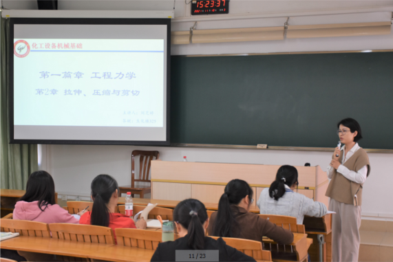 刘芝婷老师的授课内容是工程力学,具体讲述了材料力学中的拉伸、压缩和剪切。刘老师的授课十分生动易懂,善于利用道具来让同学们理解力学,语言也清晰流畅,亲和力很强,能够有效地调动学生的学习思维和积极性,让学生对材料力学的认识和学习更加深刻。