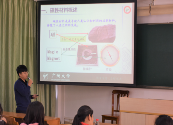 陈丽娟老师讲授的是新型功能材料,主要介绍了磁性材料的特性、分类和应用。陈老师的授课内容充实,渗透了许多专业思想,上课条理清晰,将磁性材料的特点讲得十分具体明白,反映了学科发展的新概念、新成果,容易被学生理解和接受。