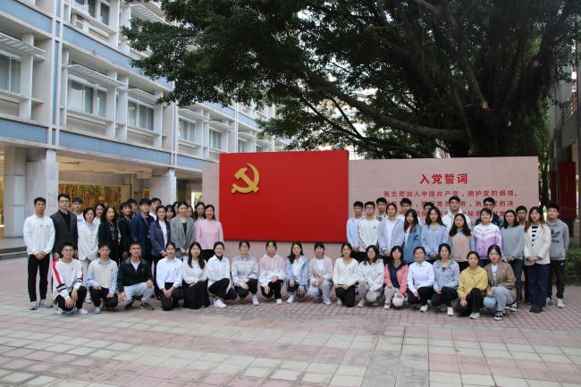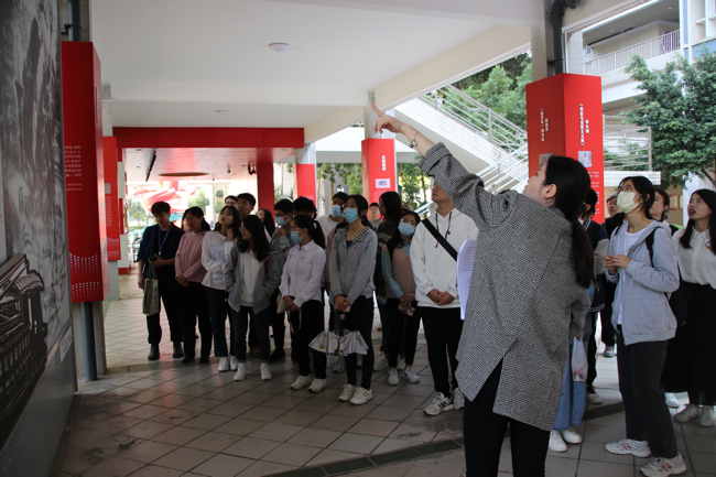 行政党支部联合学生党支部新老党员集体打卡学校最新投入使用的党建红色文化长廊,开展“穿越百年峥嵘,追忆红色印记”主题党日活动。