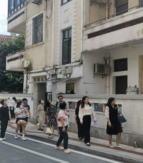 东山口保存着400多栋建于民国时期的历史建筑,是广州现存最大规模的中西结合低层院落式近代建筑群,距今近百年时间。这里每一栋房子都有自己的故事,每一栋房子诉说的故事,都是一部广州近代史的缩写,它们记载着广州城近现代的历史变迁,也承载着广州市民深厚的城市记忆。参加活动的成员一行参观了著名的逵园、春园、简园、明园等多处古建筑,大家边走边看,时而驻足观望眼前古建筑的外观设计,时而停留在楼栋门口细看相关情况简介,感受着城市历史文化的洗礼。