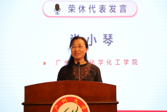 尚小琴教授作为荣休教师代表上台发言,表达了她对教育事业、对学校的感恩、欣慰和遗憾之情。
