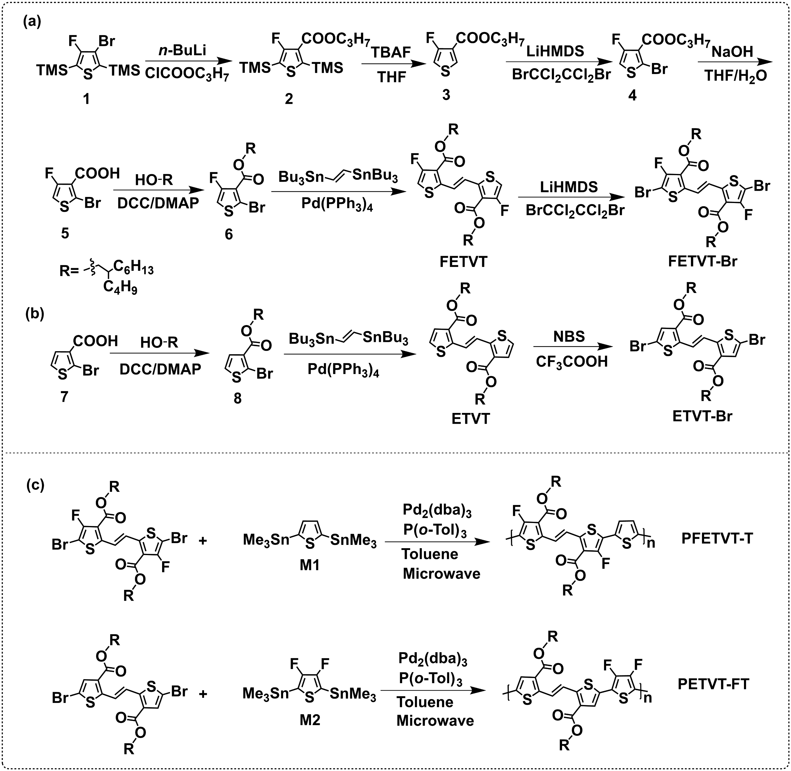 图1.新型噻吩单体和聚合物的设计与合成。