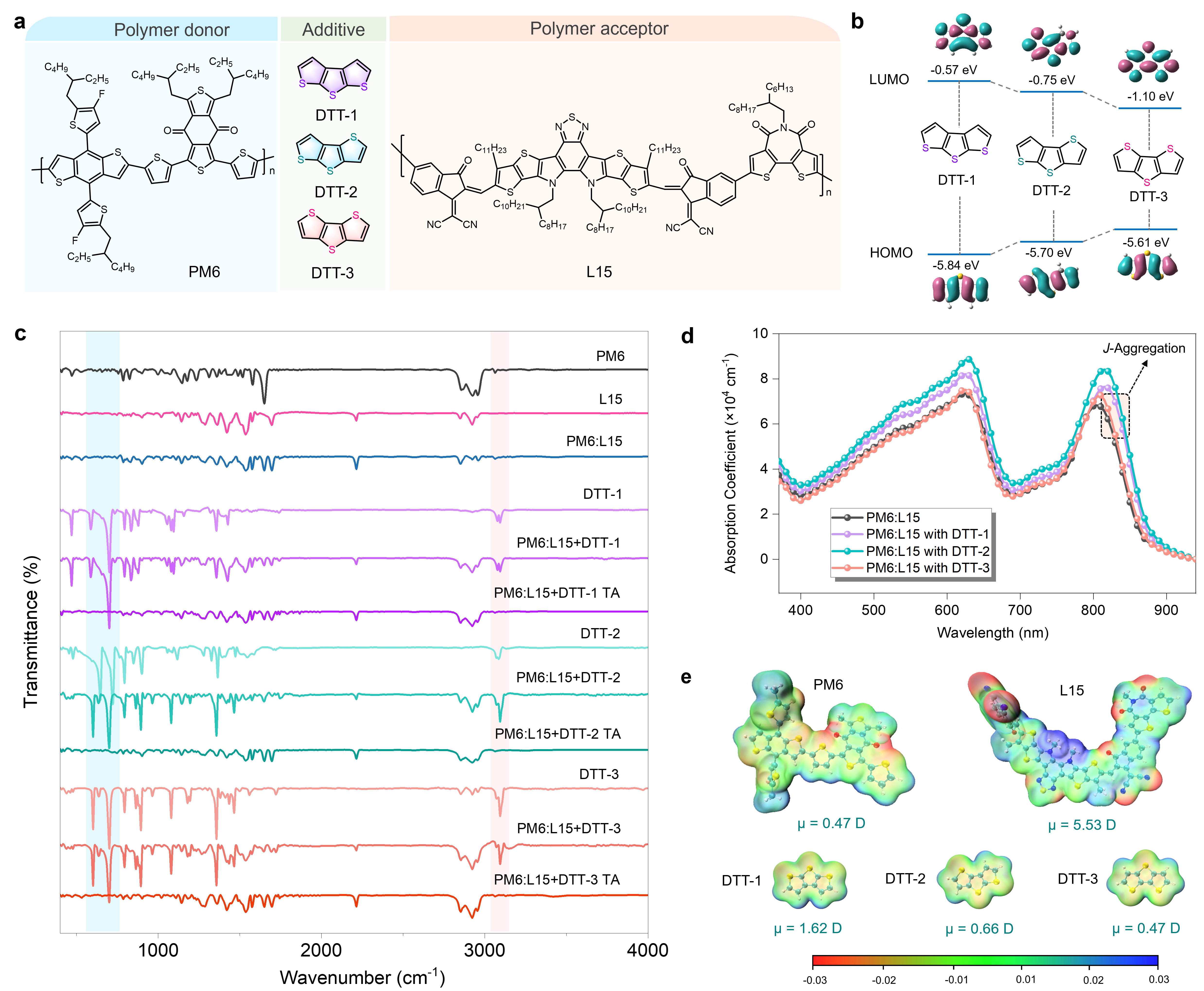 实验室规模的有机太阳能电池已经表现出超过19%的光电转换效率。然而,有害溶剂和非挥发性液体添加剂的使用给环保商业化带来了挑战,需要在设备效率和运行稳定性之间进行权衡。针对此,牛利教授团队提出了一种基于异构化固体添加剂工程的创新方法,采用挥发性二噻吩并噻吩(DTT)异构体来调节分子间相互作用并促进光敏层内的分子堆叠。通过在分子水平上阐明DTT诱导聚合物组装的基本原理,使用环境友好型溶剂加工的器件的光电转换效率得到了极大的提升。值得注意的是,DTT异构化策略的这种优势与大面积刀片涂层技术具有良好的兼容性,为有机太阳能电池的工业规模制造提供了一条有前途的途径。此外,这些器件表现出了优异的热稳定性,预计T80寿命可达14000小时,进一步增强了其可持续技术进步的潜力。