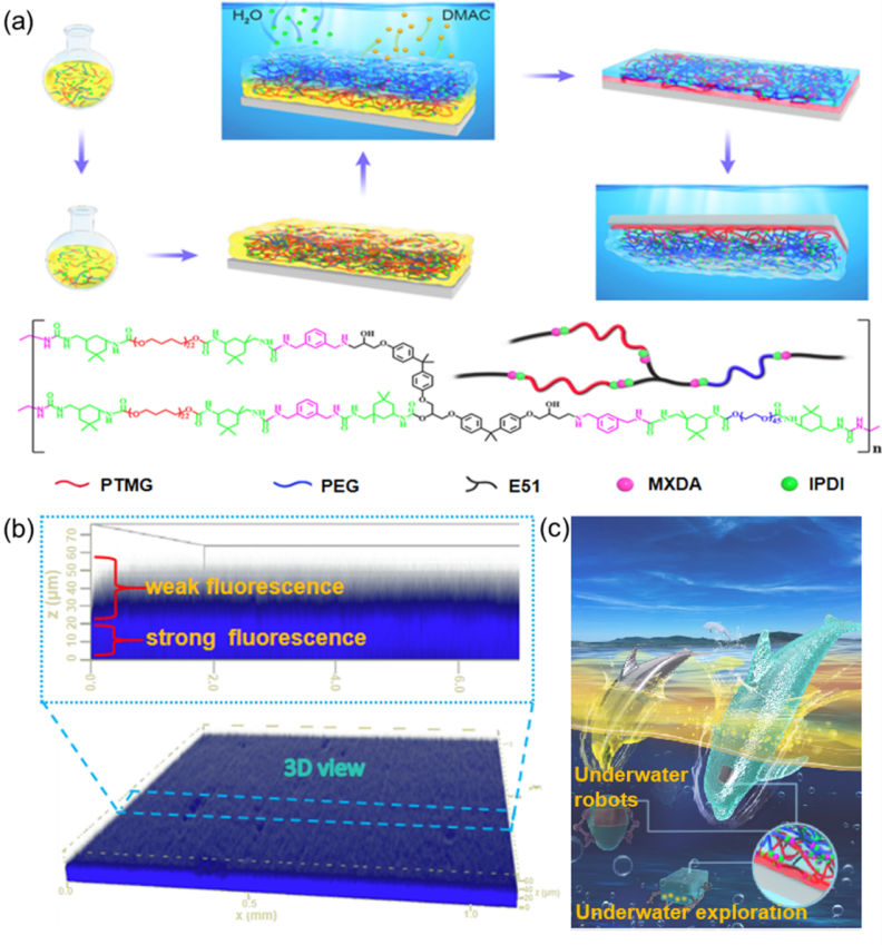 自然界中,鱼类、藻类等众多海洋生物进化出水凝胶类的生物表面,在水下环境中表现出优异的疏油、防污、减阻、抗生物粘附等功能。在合成材料的开发与应用过程中,水凝胶材料高度的亲水性结构和水化层界面,导致其在水下环境中难以实现与基材高强度长时间的附着性,限制了水凝胶作为涂层材料在船舶、平台和各类水下装备等领域的应用。近日,av电影