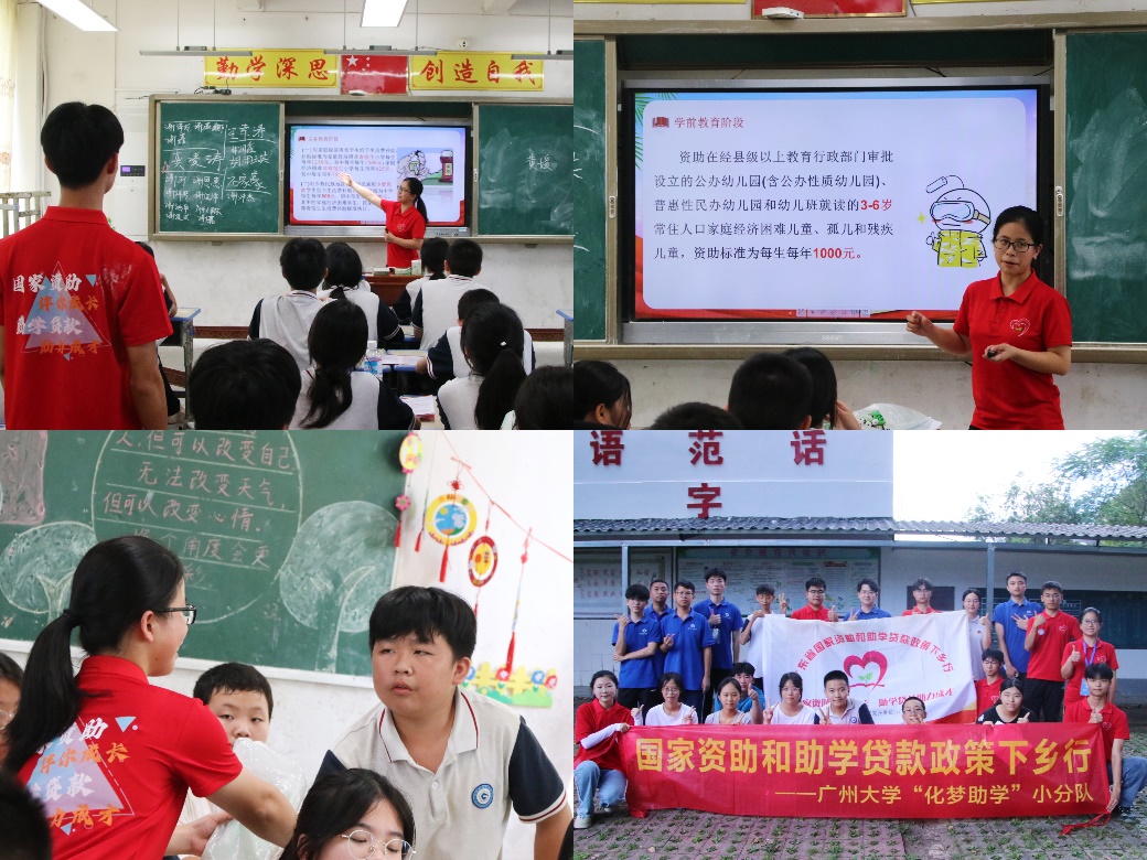 此次实践队伍前往梅州市蕉岭县广福镇、平远县差干镇开展实地调研,走访村镇政府单位深入交谈,调研当地灾后重建的实际和资助政策普及情况,在村委的协助下开展入户调研,进一步了解当地村民的需求,设立咨询摊位宣传国家资助与助学贷款政策,为当地留守儿童开设成长营活动,开展资助育人主题的资助政策宣讲会,引导儿童树立正确的价值观与人生观。