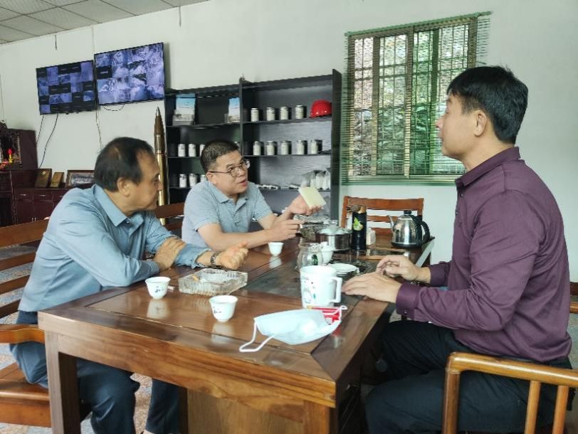 (李卓勇书记、刘自力教授与张忠标总经理探讨产品研发问题)
