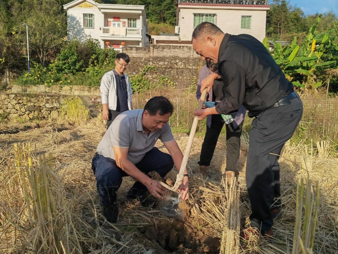 (龙建友教授采集当地种植土壤样本进行分析检测)