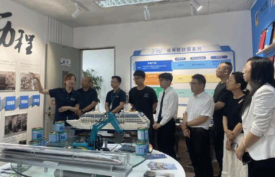 师生参观公司展厅,详细介绍了公司的发展历程、资质荣誉及主营业务,重点展示公司在工业防腐涂料上的技术成果与应用场景。通过市场部的生动讲解,师生们对化工新材料从研发到产业化的全链条逻辑有了更全面的了解。