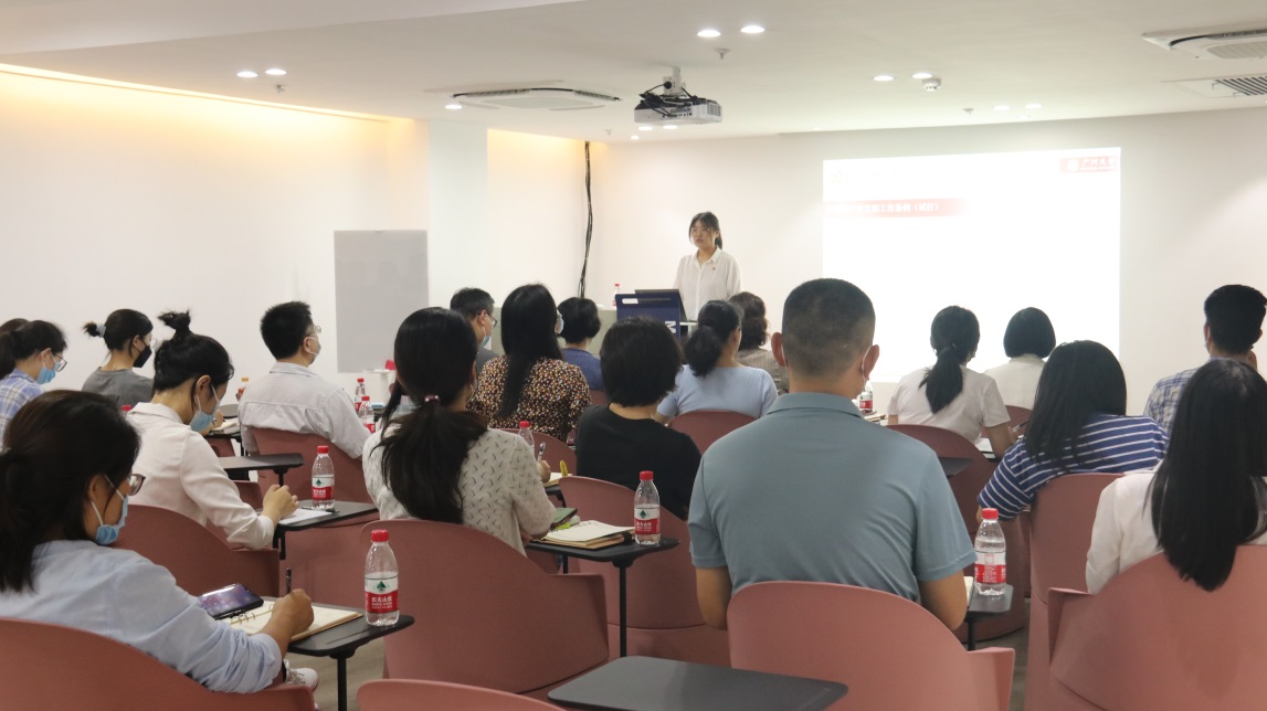 党委书记周海兵主持,学校党委组织部干部任亚萍应邀做专题培训,任老师以“党支部规范化建设”为主题,对相关政策文件、工作条例进行详细解读,并结合工作中实际案例进行讲解,引导党支部书记和党务干部加强党建业务知识的学习力度,不断提升自身能力素质,充分发挥先锋模范带头作用,稳步推动基层党组织规范化建设。