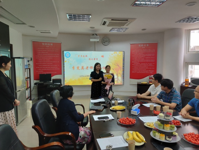李楚英老师回忆了自己在广大工作十多年来的点点滴滴,感谢了同事对她工作的支持和生活的关心。老同事们逐一回忆了与李楚英老师相处的趣事和往事,同时对李老师退休后的生活送上了自己真诚的祝愿,回忆到动情处,有多位老师哽咽地说出心里话。