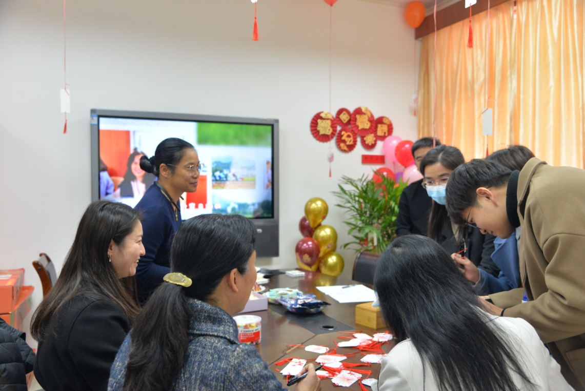 活动开场之后,老师们陆续进场,写下新年愿望、挂心愿卡、抽奖、品尝点心、观看分工会过去一年的活动回顾视频,畅谈过去的2021年发生的种种事情,展望2022年美好的未来。