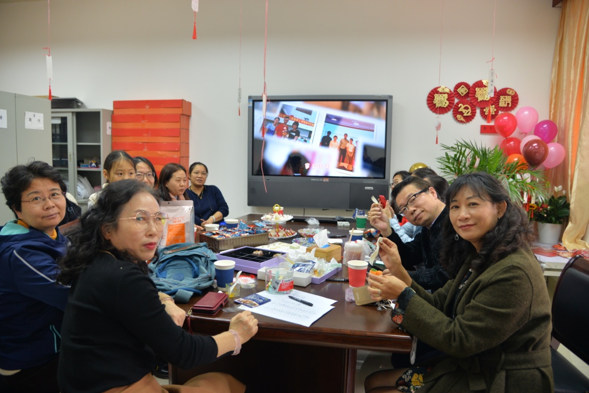 在几位热心老师的帮助下,小小的会议室被布置得温馨可爱、充满了年味。